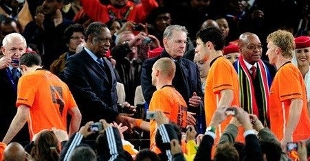 Het WK in Zuid-Afrika was een mooi toernooi. Waar veel coaches niet vol op de aanval durfte te voetballen. Als dat fout gaat, ben je meteen je baan kwijt. Het werd dus niet een toernooi met fantastisch voetbal, of het toernooi van Messi, maar het was wel heel spannend. Zo lag wereldkampioen Italië al heel snel uit het toernooi. Ook Frankrijk overleefde de poulefase niet. Andere toplanden als Engeland, Brazilie, Argentinië en Portugal, werden later in het toernooi uitgeschakeld. Suárez redde Uruguay door in de kwartfinale tegen Ghana keeper te spelen. Door deze handsbal kreeg hij rood en kreeg Ghana een penalty. Maar de spits van het laatst overgebleven Afrikaanse land schoot over. Dus stond Uruguay in de halve finale tegen Oranje dankzij de daarna geschorste Suárez. Nederland won elke wedstrijd, behalve de finale. Daar ontmoette het Spanje, dat in de halve finale had afgerekend met Duitsland en daarvoor met Paraguay. Nederland versloeg in de kwartfinale Brazilië, en in de halve finale Uruguay. De derde plaats ging uiteindelijk naar Duitsland, dat Uruguay met 3-2 versloeg. Verder waren de fouten van de arbitrage een belangrijke rol in dit toernooi, ze maakte veel fouten. Bijvoorbeeld een bal van Lampard die onderkant lat ging, over de lijn. Maar deze werd niet geteld. Van Blatter (FIFA-baas) mochten er geen camerabeelden gebruikt worden, helaas. Ook waren de bal (Jabulani) en de Vuvuzela betrokken bij dit toernooi. De bal was dan wel de rondste ooit, hij zwabberde enorm. Volgens veel voetballers was de bal van Adidas 'een verschrikkelijke bal'. De toeter was erg irritant, alle Afrikanen bliezen op deze toeters, met z'n allen tegelijk! De NOS heeft uiteindelijk besloten om het stadiongeluid iets zachter te zetten. Na het toernooi was er een huldiging voor het Nederlands elftal. Van Bronckhorst (captain) en Van Marwijk (coach) krijgen werden allebei benoemd tot Ridder in de Orde van Oranje Nassau door Balkenende. Heel veel mensen verzamelden zich in de grachten van Amsterdam om Oranje toe te juichen. De spelers van Oranje hadden dit nooit verwacht, bovendien was het de grootste huldiging voor Oranje ooit!